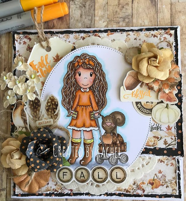 Today's card is by guest designer Rachel Wade. She used great colors and papers for this beautiful Fall card. The image is Emma with Squirrel.